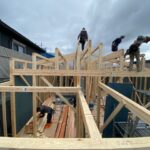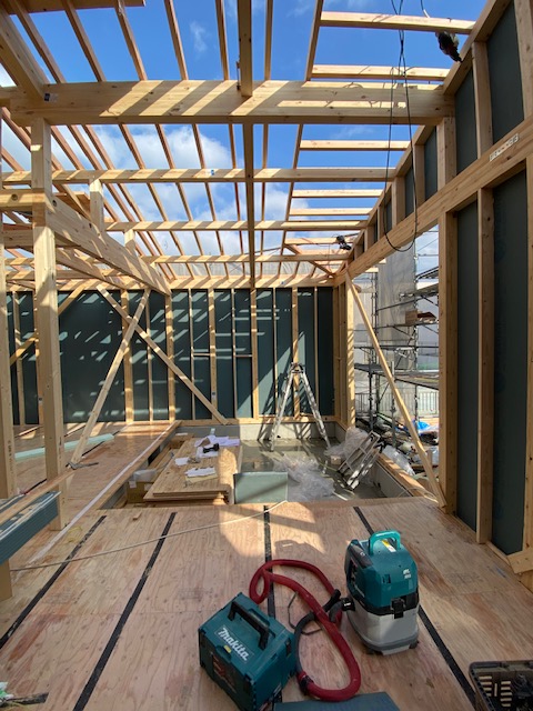 始まりは雨でしたが徐々に天候も回復し棟が上がる頃には青空に。